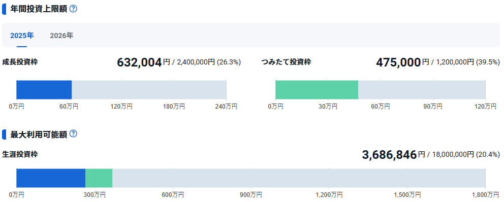 最初の2024年に成長投資枠で貯金をつぎ込んでしまったので、(2024年228万)
